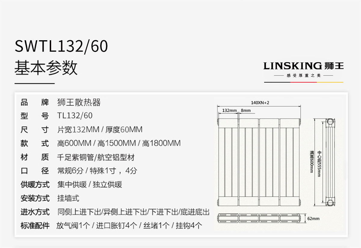 銅鋁復(fù)合暖氣片/散熱器_132x60